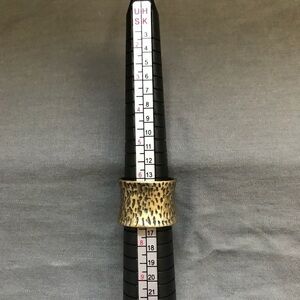 Lia Sophia Kiam family cigar band style ring. Brass tone finish with fluted ends. Size is approximately 7/7.5 (please see picture)