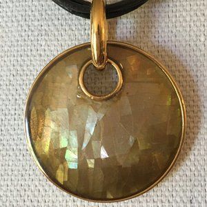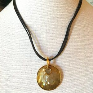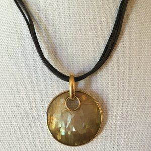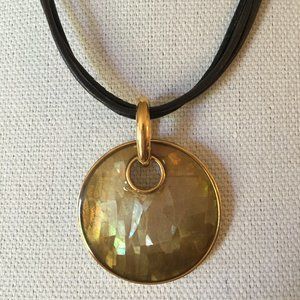 Lia Sophia Leather Necklace Cracked Beige Pendant