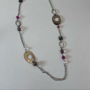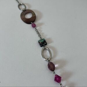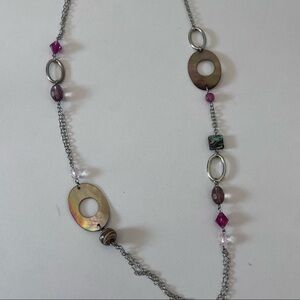 Lia Sophia Mantra Silver Tone Resin Mother Pearl Abalone She’ll Wood Necklace