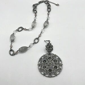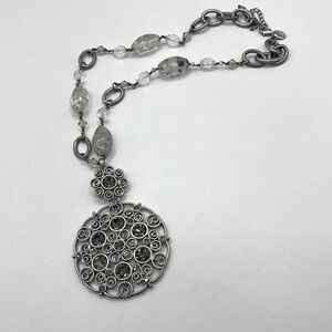 Elegant Lia Sophia necklace with intricate silver pendant. Features clear beads for a sophisticated look.