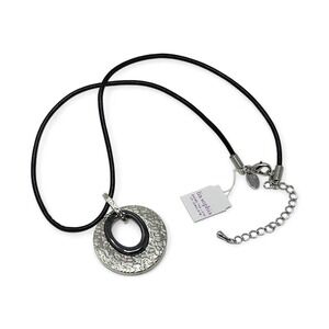 Lia Sophia Merge Necklace Black Leather Cord - Silver Black Enamel Circle 16-19"