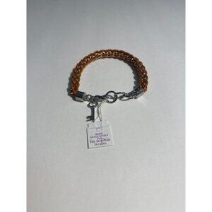 Gorgeous bracelet with silver plating and key charm with orange braided with silver. Stamped 'Lia Sophia