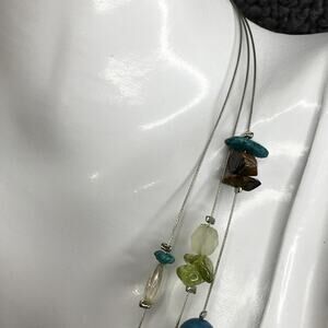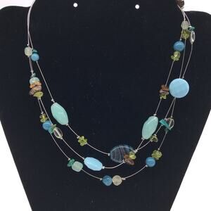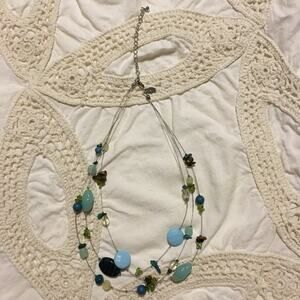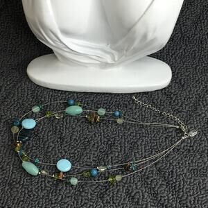 Lia Sophia Multi-Strand Floating Necklace Blue Green Silver Tone