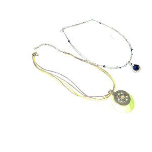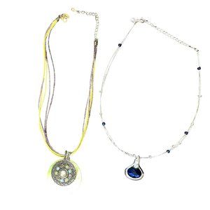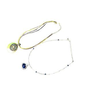 Lia Sophia Necklace Lot Of 2 - Baja Blue Pendant - Meadow Green Shell Cord Boho