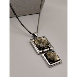Lia Sophia Necklace Pendant Green Flux Resin Crackle Glass Beveled Statement