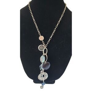 Lia Sophia Neptune Windsong Silvertone Necklace Genuine Abalone Glass Beads
