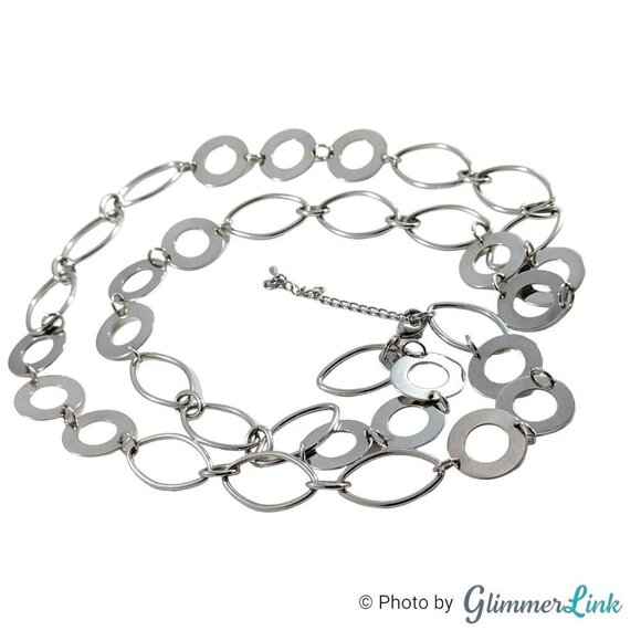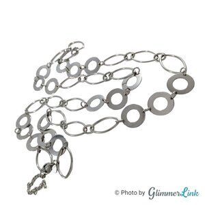 Lia Sophia "Revel" long silver tone necklace featuring oval and flat circular links.