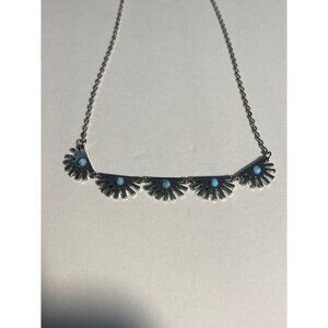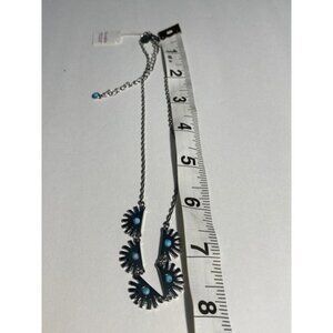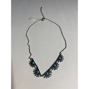Lia Sophia SUPER FAN Necklace Silver Tone w/ Turquoise Lobster Claw Clasp 16 in