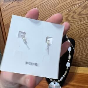 Lia Sophia "seascapes" necklace and earrings set, mother of pearl accents, fresh water pearls, white jade. Beautiful necklace and earrings set, earrings have original packaging, necklace is stamped but does not have original tag. Necklace comes with four inch extender as pictured.