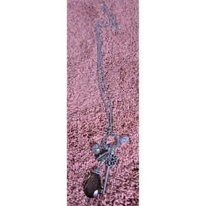 Lia Sophia Smoky Gray Glass Key Cameo Charm Silver Tone Rope Chain Necklace 34"