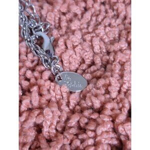This is a Lia Sophia Smoky Gray Glass Key Cameo Charm Silver Tone Rope Chain Necklace. (DSC)