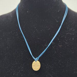 Lia Sophia Spotlight Crystal Pave Coin Gold Tone Pendant Blue Cord Necklace NIB