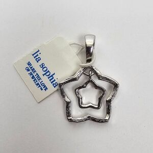 Lia Sophia Star Pendant Double Open Textured Smooth Silver Tone Metal Reversible