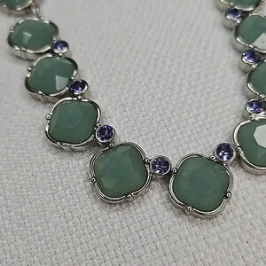 Lia Sophia Statement Necklace in Silver with Mint Green and Blue Accents