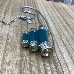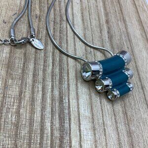 Lia Sophia Tiered Teal Enamel Rhinestone Pendant Silver Tone Necklace