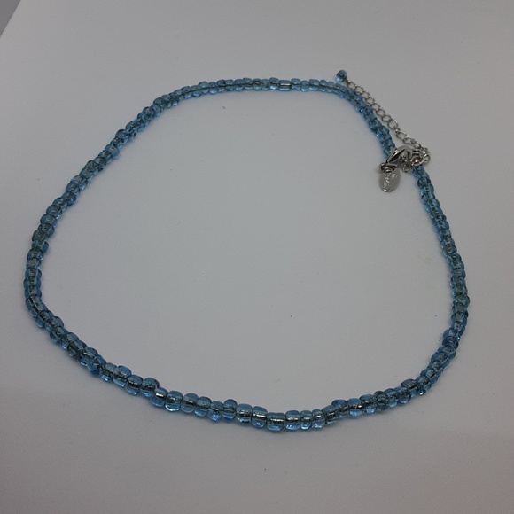 Beautiful tiny bead necklace. Aqua blue beads. Silver tone extender. Lobster closure. No breaks or missing pieces.