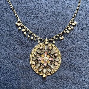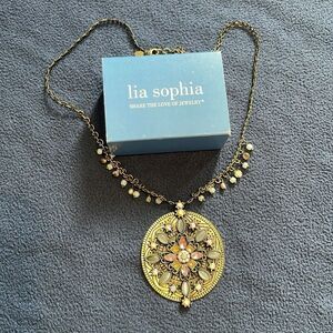 Lia Sophia Vicenza Necklace Retired 2009, 20" Chain Round Pendant Gold Tone