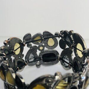 Lia Sophia Y2K Stretch Cuff Bracelet Crystals Cabochons Black Honey Gold Stones