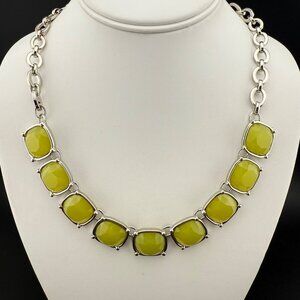 Lia Sophia Yellow Faceted Plastic Stone Necklace Silver Tone Chain Link Adjustab