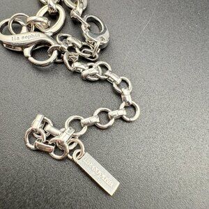 This Lia Sophia necklace features bright yellow faceted plastic stones set in silver tone metal frames. An adjustable chain link design and secure lobster clasp add functionality and charm.