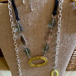๐ New long silver tone yellow oval rings necklace measures - 37" long with a 3' extender