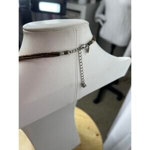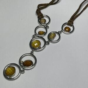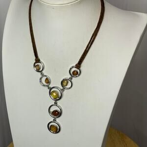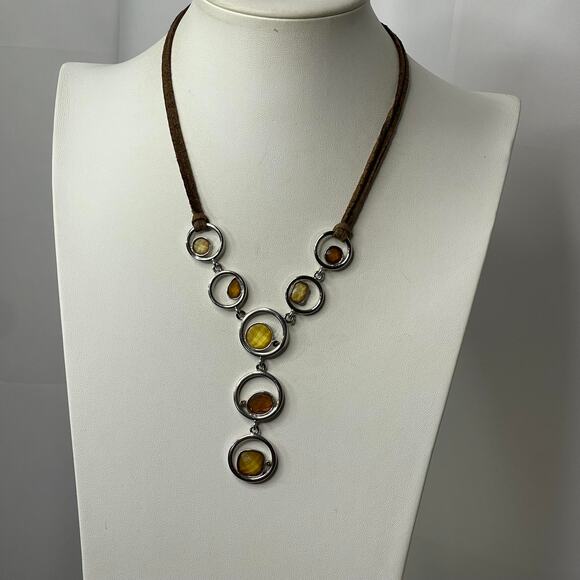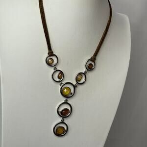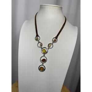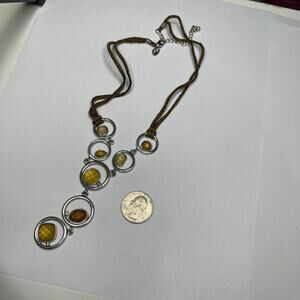 Lia Sophia necklace costume signed jewelry gray suede with a silver tone setting neutral natural, 32” in length with a 3” pendant.