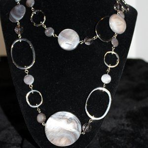 Lia Sophia silvertone rings & abalone look discs necklace