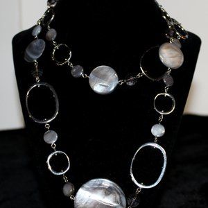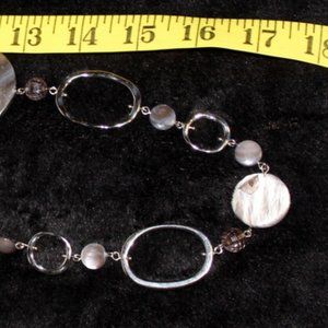 Lia Sophia silver tone abalone like and silver links necklace. 17 1/2 inch wearable length. Good pre-owned condition.