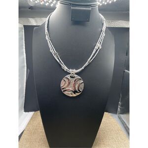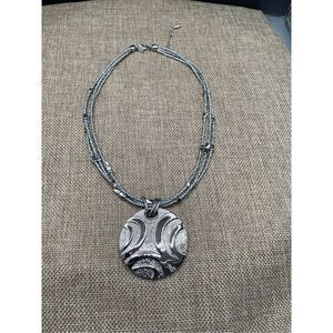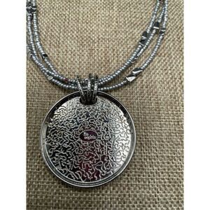 Lia Sophia Synergy Retired Necklace Silver Disk Gray Beaded