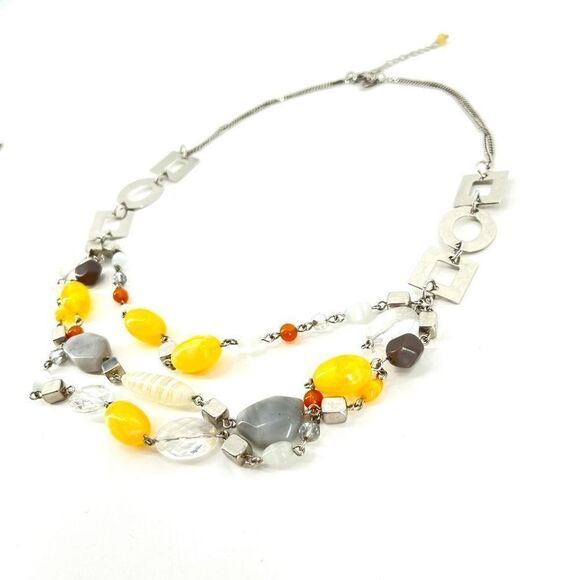 Lia Sophie Beaded colorful layered career necklace yellow & gray