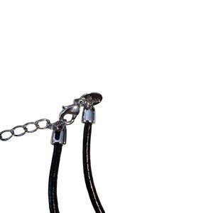 Lia Sophia De Orse black necklace with a silver tone and mother of pearl teardrop pendant.