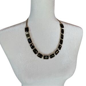 Olive green stones in gold tone metal. Extended chain. Collar style statement necklace. 17.5 inches long with 4.75 extended chain. Brand: Lia Sophia