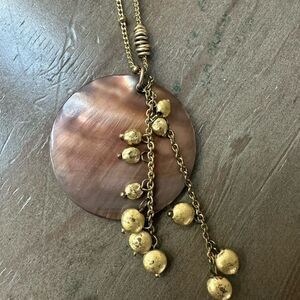 Lia Sophia Toasted Gold and Brown Iridescent Pendant Necklace.