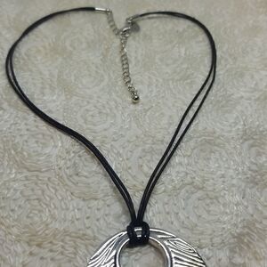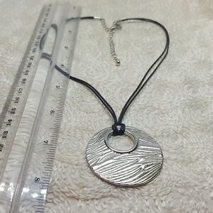 Lia Sophia, Circle Pendant, Swirl, Silver, double black string, necklace