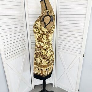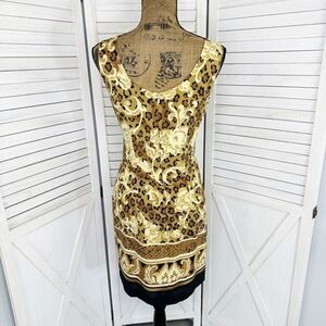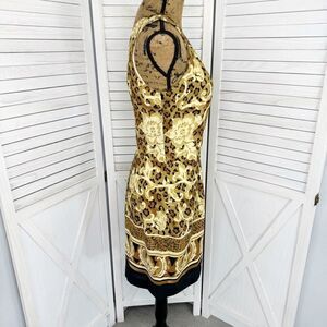 Liaison Paris Floral Leopard Print Sheath Dress Tan Black Size 10 Sleeveless