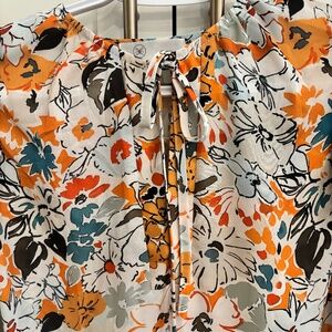 This cute blouse is perfect for the coming fall season! The sleeves are oh so cute and feminine! It has an open neck but with a string tie to close it!! Size S, VGUC