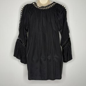 Liam & Co. Womens Blouse Medium Black Dark Romantic Lace Eyelet Goth Feminine