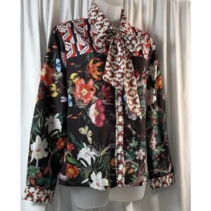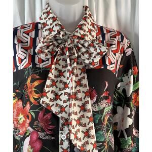 Liang Dian YiZ Bow Shirt Multi Color Print 2XL Academia Chic 80-70-01