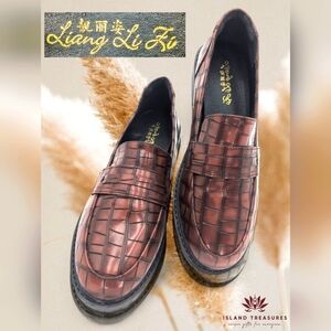 LIANG LI FI Reddish Brown Faux Leather Loafers | EU 41 / Approximately US 9.5 | New, Comfortable, Stylish