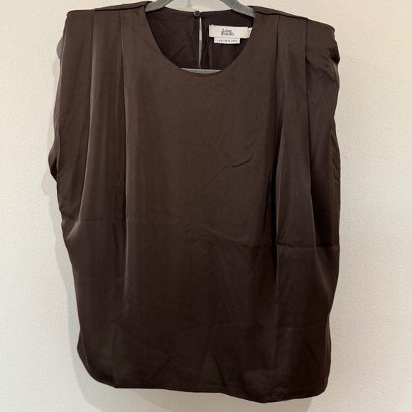 Meet the top that means pure business. We designed this with front pleats and padded shoulders so you can ace all your pitches with confidence. Made from soft satin for an extra luxe feel and comes with a back button closure.