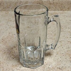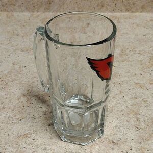 Extra large clear glass mug, with the NFL Arizona Cardinals logo, in red, yellow & black colors