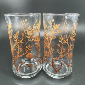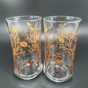 Libbey Autumn Tree Glass Tumblers Drinking Glasses Set 2 BarWare Cups Glasses