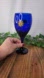 This elegant vintage wine glass features a stunning blue design with a sun and stars motif. Perfect for adding a touch of celestial charm to your home decor.