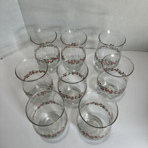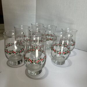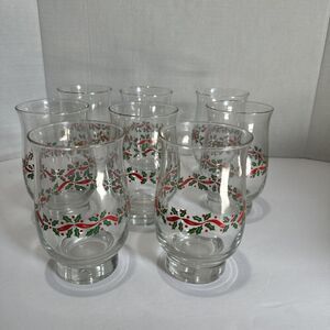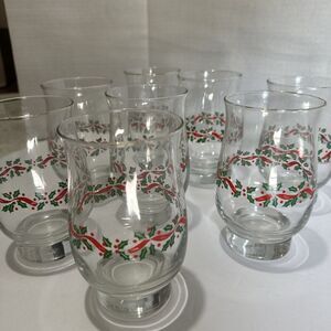 Libbey Christmas Glasses Ribbons And Holly Set Of 8