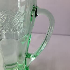 Libbey Coca Cola Glass Mug 16 fl oz Handled Green Tint Heavy 6.25" Tall Embossed