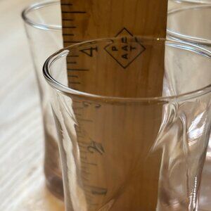 These vintage pink swirl glass tumblers offer a touch of elegance with their unique design. Ideal for serving beverages, they showcase a timeless aesthetic.