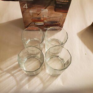 Libbey Drinking Glasses Set of 4 Octagon shaped. Crafted in the USA.