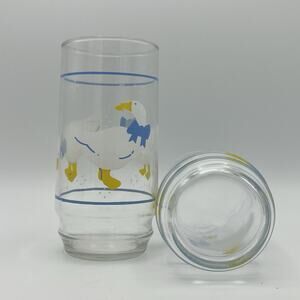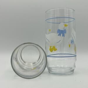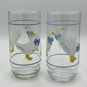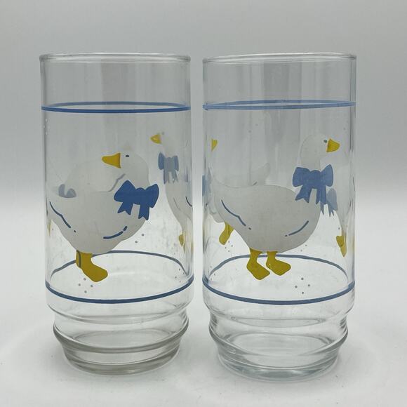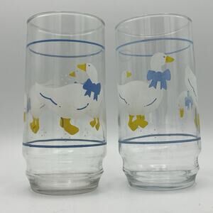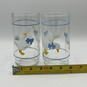 Libbey Drinking Goose Glasses White Geese With Blue Bow Vintage Set Of 2