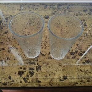 Libbey Frost Pattern Clear Drinking Glasses Set of 2 Crackle pattern on inside