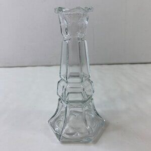 Libbey Gibraltar Clear Glass Rook Bud Vase Set 2 Candle Stick Holders Vintage